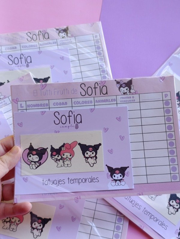 Se puede personalizar con fondo a color, el personaje como marca de agua y el nombre acompañado del Tutti frutti de...