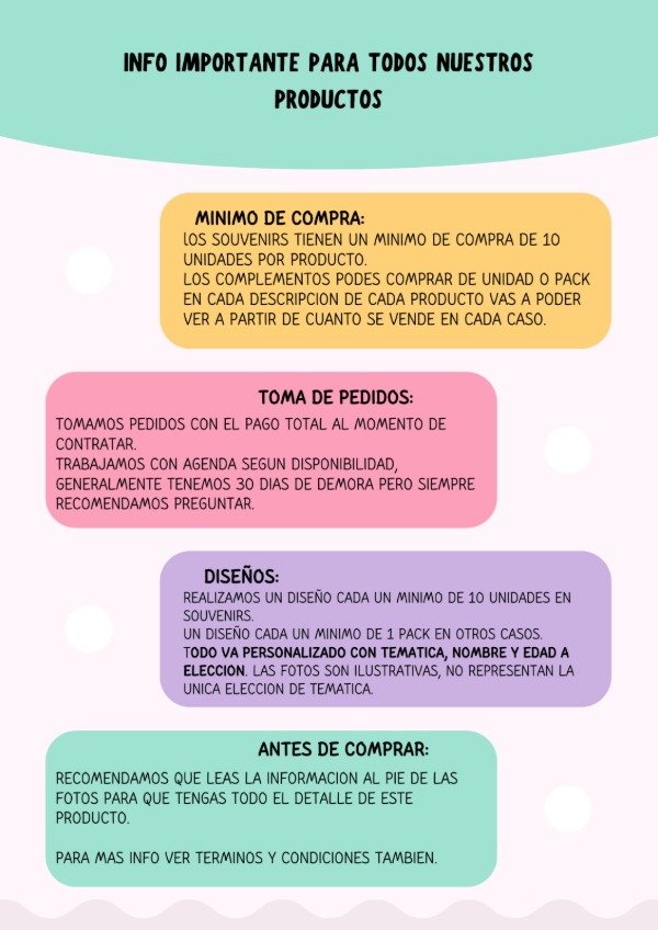Son presentados en una tarjeta de 14x9 donde pondremos el fondo acorde a la tematica, nombre y edad que quieras.